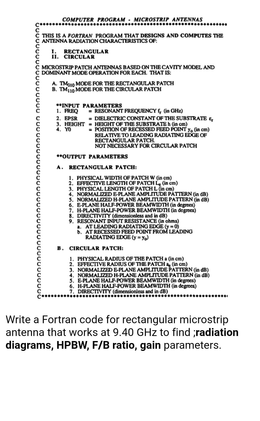 COMPUTER PROGRAM - MICROSTRIP ANTENNAS THIS IS A F... | Chegg.com
