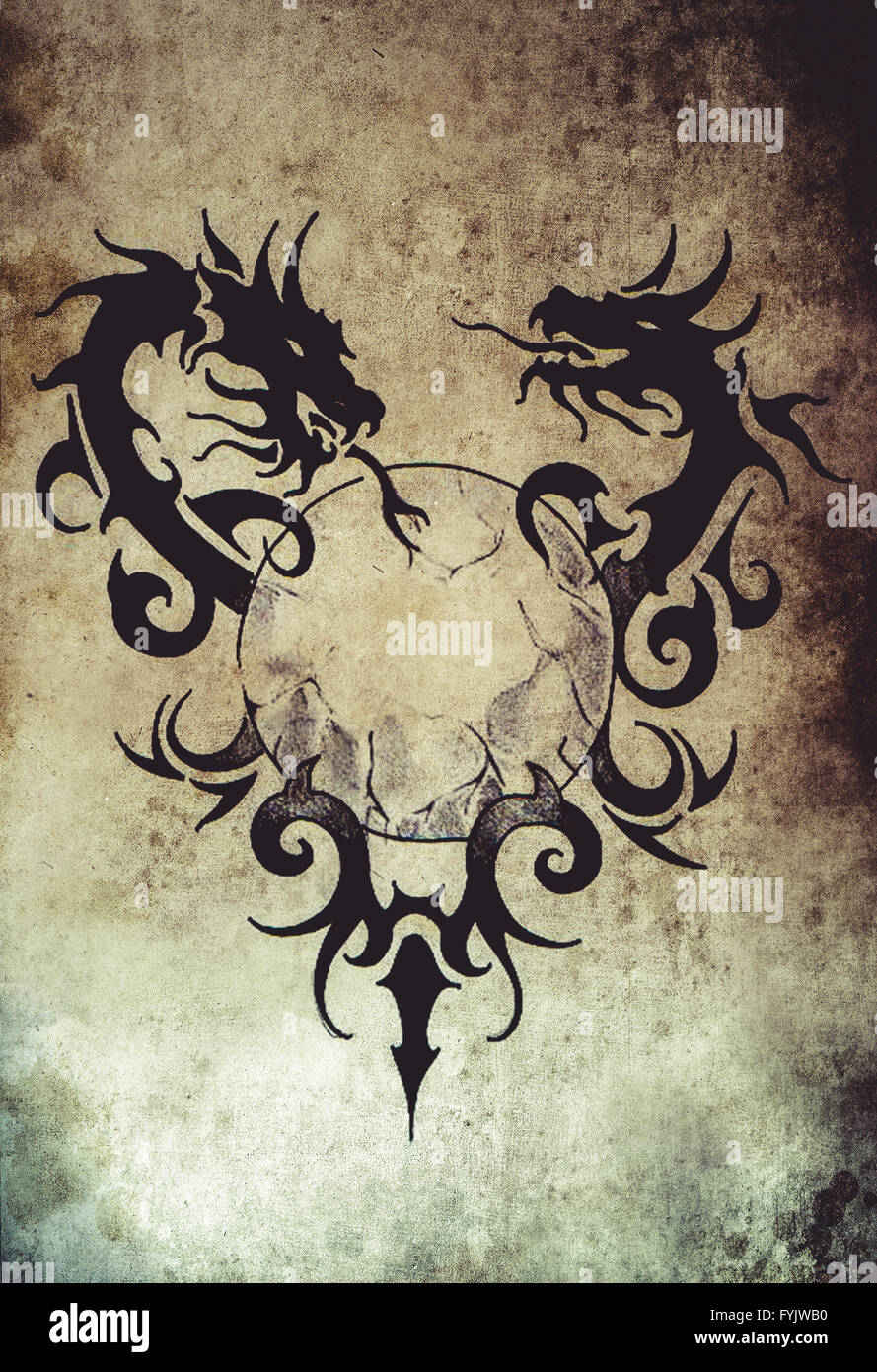 Dragon Tribal With Sphere Tattoo Sketch Handmade Design Over Stock Photo Alamy