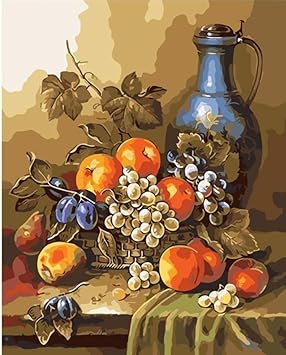 QIANERA Jarrón de Uvas y Frutas Cuadros de Pintura al óleo por números Bodegón Fotografías Digitales para Colorear a Mano Decoración para el hogar16 × 20 Pulgadas: Amazon.es: Juguetes y juegos